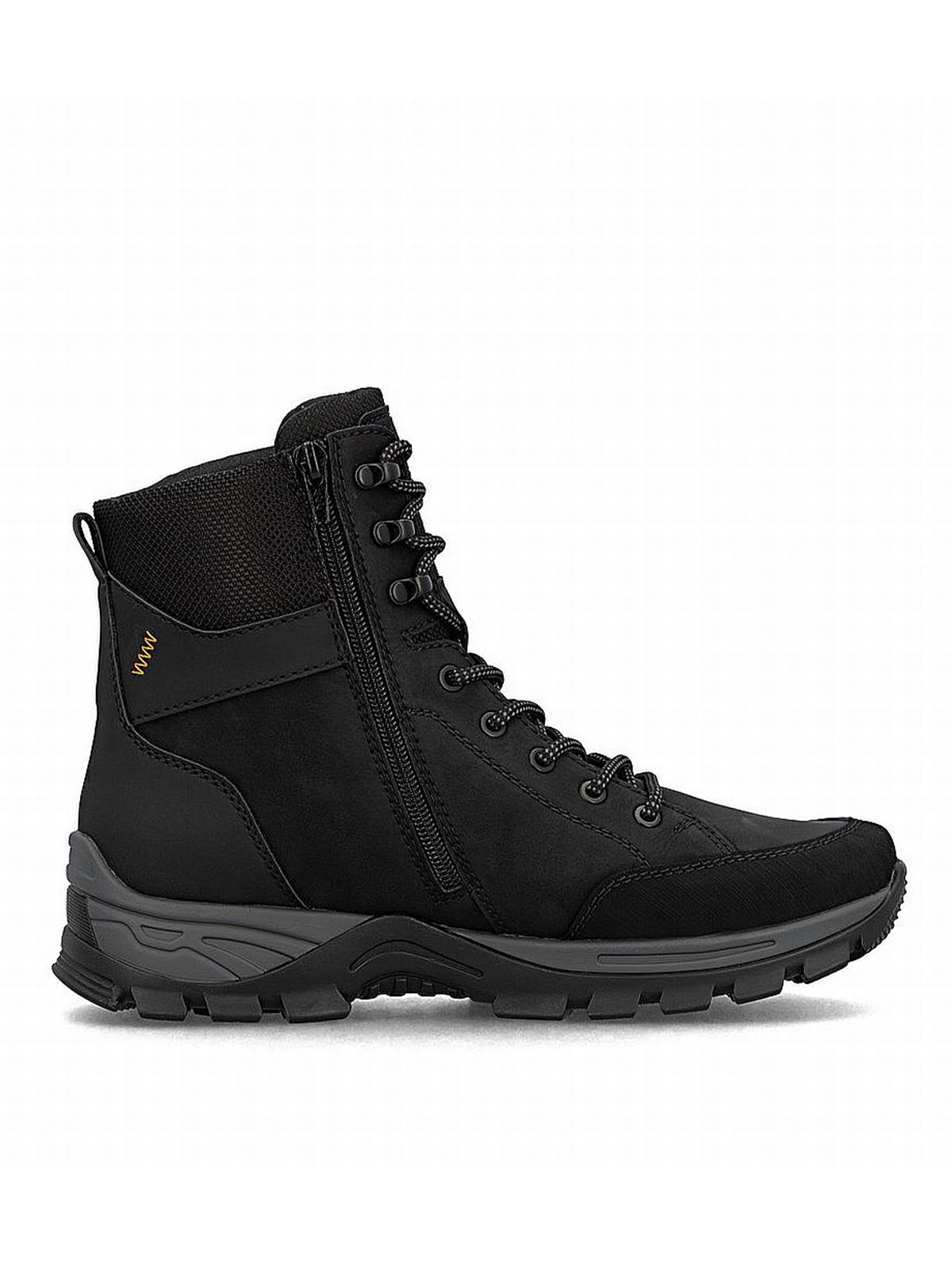 Современные мужские зимние ботинки Rieker с верхом из натуральной кожи и стильными накладками из искусственной кожи — это идеальный баланс практичности и актуального дизайна. Их внутренний подклад из натурального набивного меха и мембраны обеспечивает тепло и защиту от влаги, а мягкая велюровая стелька создает ощущение уюта при каждом шаге, обеспечивая внутреннюю вентиляцию стопы. Высокая шнуровка, дополненная обувными крючками в верхних рядах, позволяет надежно зафиксировать обувь на ноге, а молния облегчает надевание и снятие. Надежная полиуретановая подошва с отличной амортизацией гарантирует комфорт и устойчивость на любой поверхности. Стильный полуспортивный дизайн отлично вписывается в активный образ жизни, делая эти ботинки универсальным решением — и для прогулок, и для городских будней. Практичные, удобные и стильные, они станут вашим надежным спутником в холодное время года. оптом в Челябинске